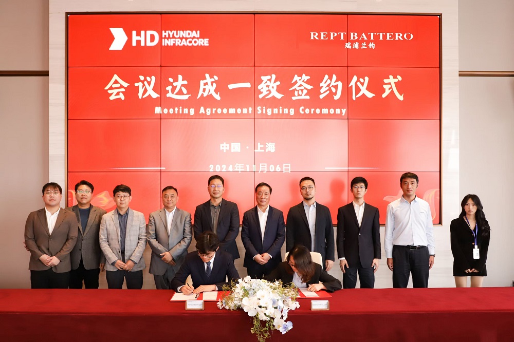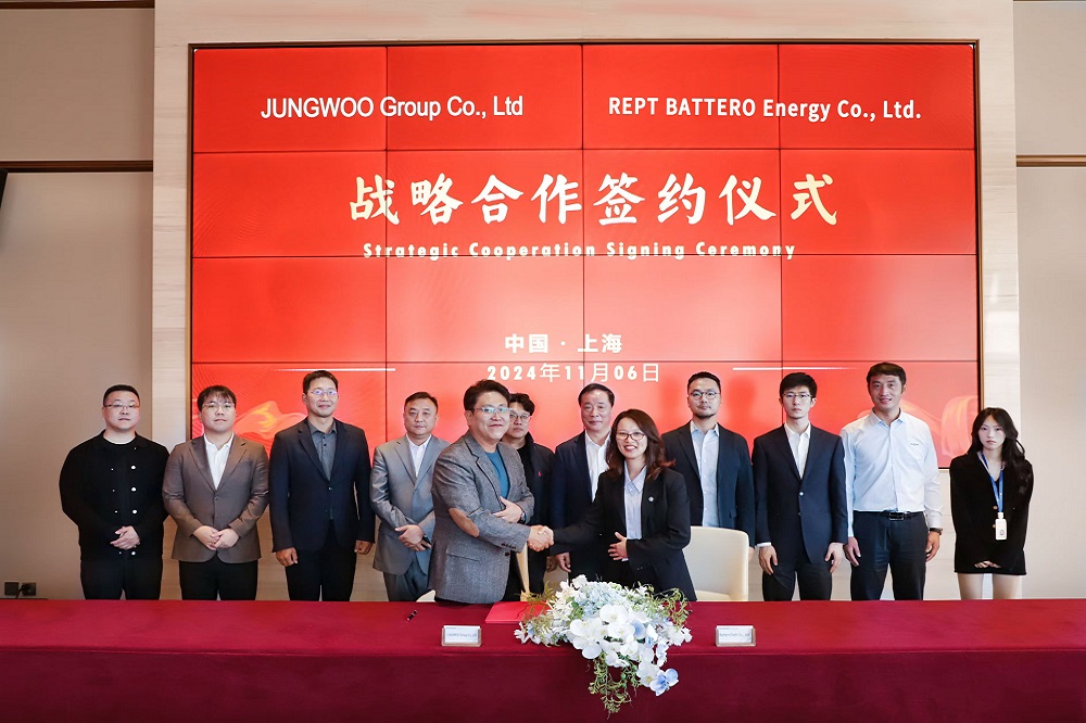 11月6日下午,瑞浦兰钧能源股份有限公司与JUNGWOO Group Co., Ltd.在PA旗舰厅实业大楼举行战略合作签约仪式,同时与HD Hyundai Infracore(HD现代工程机械)在会上就双方未来合作方向达成一致。