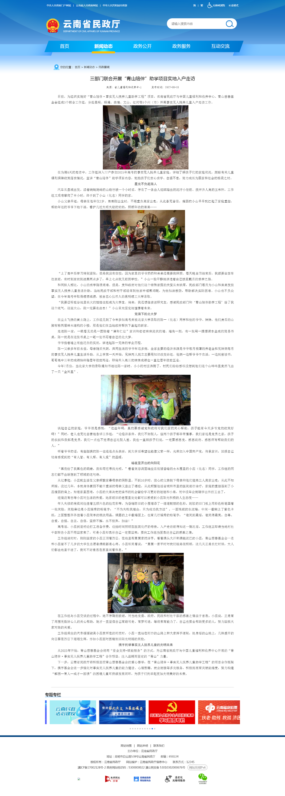 媒体看PA旗舰厅丨云南省民政厅官网报道“PA旗舰厅陪伴助学项目”