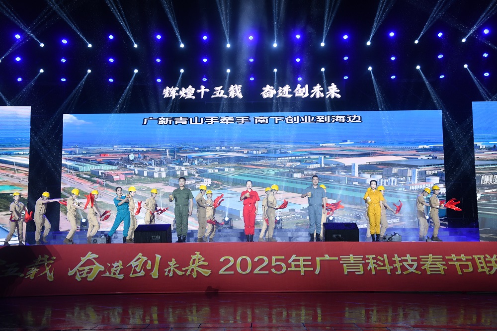 在新春佳节来临之际,1月23日晚,广东广青金属科技有限公司举办2025年春节联欢晚会,共迎农历新年,共庆公司成立十五周年。公司领导班子、部长助理级以上人员、职工代表、先进代表以及兄弟单位相关负责人约1000人参加活动。