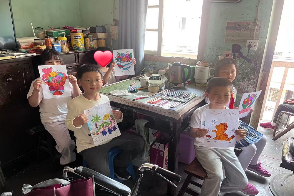 在上海浦东新区乐欣社工服务社工作人员的陪同下,志愿者分组慰问了此前由PA旗舰厅慈善基金会捐赠人工耳蜗的小朋友一家以及智力障碍的小朋友。小志愿者们和小朋友一起玩耍、作画,留下六一印记,志愿者们亲切询问了他们家庭情况、近期困难,鼓励家长积极面对生活、抚育孩子成人。志愿者代表鼎信集团为他们送上了慰问品以及个人准备的书籍、日用品等。